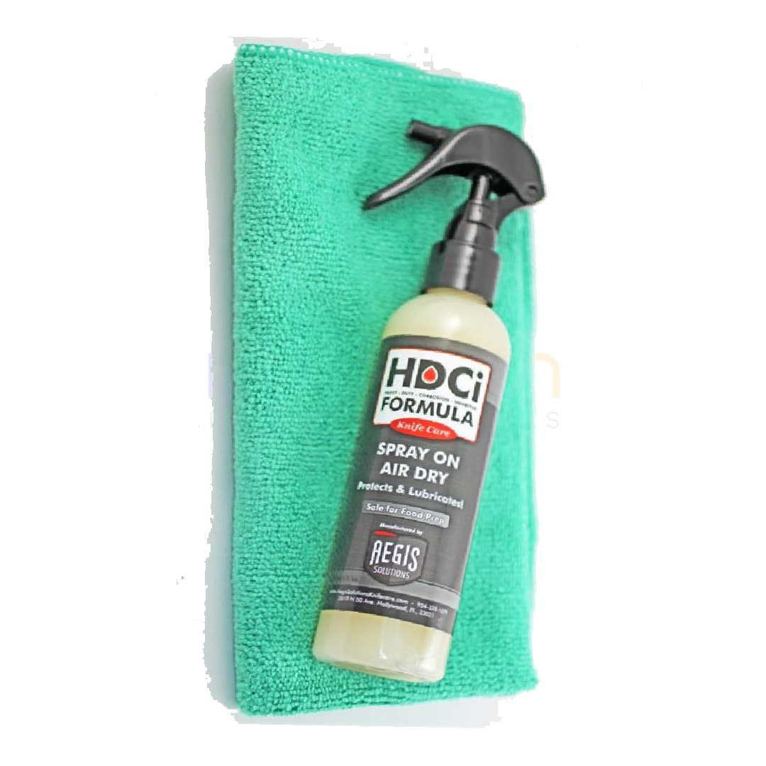 For best results, Liberally spray HDCi onto the knife while coating both sides and hard to reach areas. Then, allow the knife to air dry untill the coating is almost evaporated. HDCi should not be wiped off like the EDCi formula. Re-coat the knife as needed.