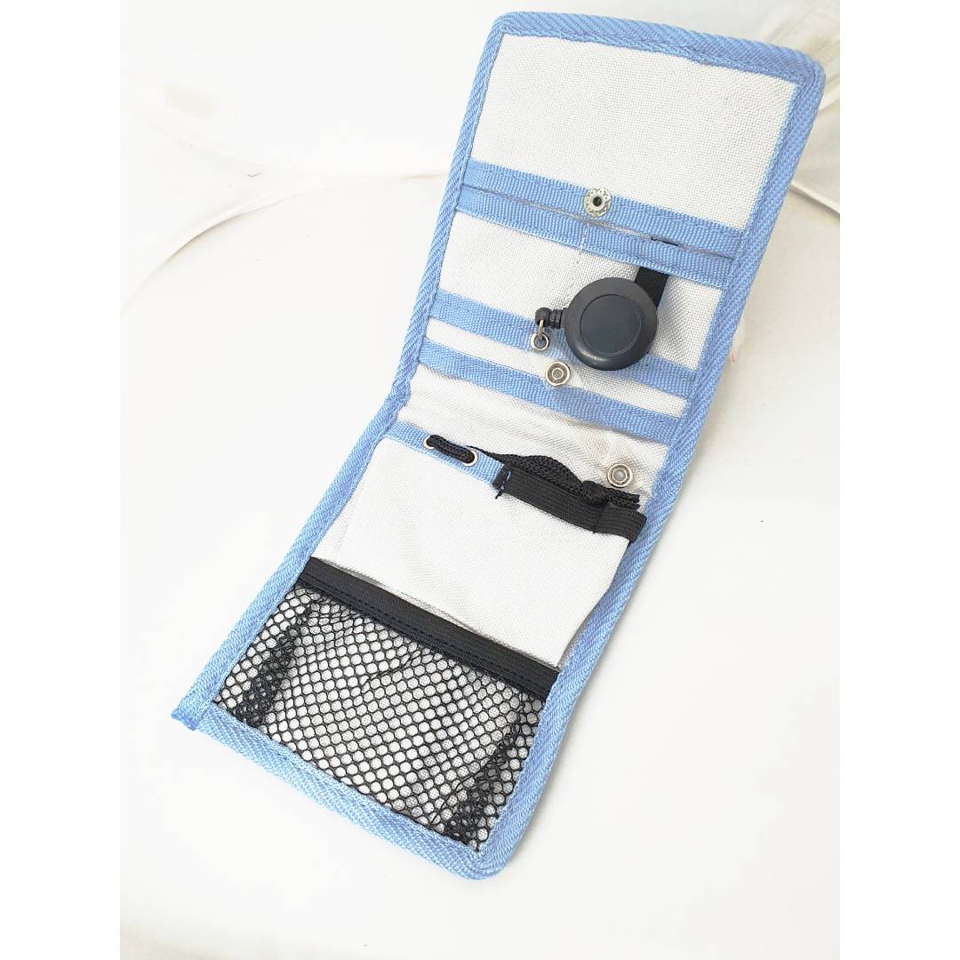 This organizer is designed to be carried in the pocket of the nursing pyjama. It allows to bring all needed materials in Hospital nursing, such as three way stopcocks, valve caps, medical torch, tweezers, pen, etc. It can independently be used as a desk organizer.
