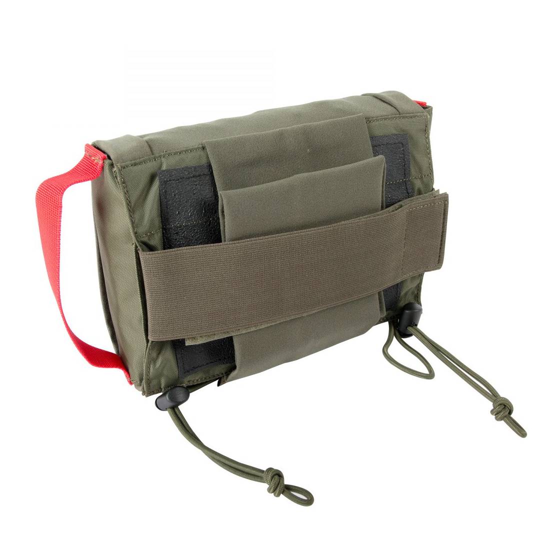 First Aid kit with quick access system. For attaching to the back of the car seat headrest on the driver’s seat or the passenger’s seat. The panel with individually configurable loops can be removed by the handle from the right or the left. Part of the TacVec series.
