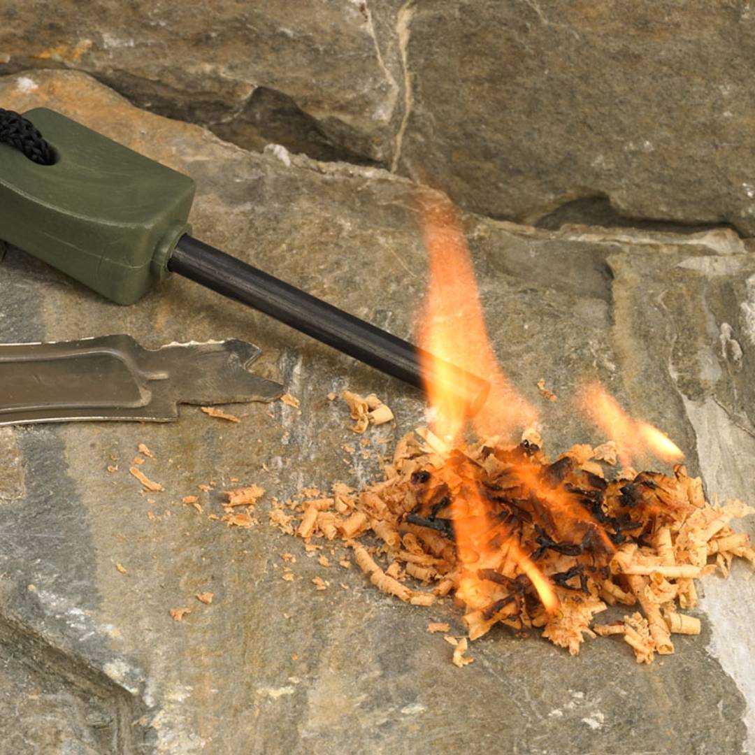 NDūR® Fire Steel & Striker is easy and safe to use . Used by avid outdoorsman, survivalists and military members all over the world. Will light a fire or ignite the fuel in a camping stove in rain or snow Generates a 5400°F (3000°C) spark. Approved, preferred and recommended by survival experts worldwide.