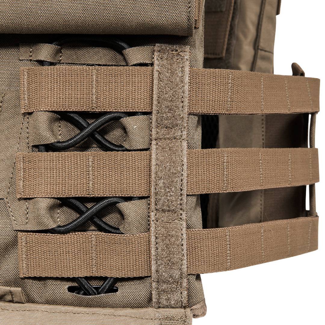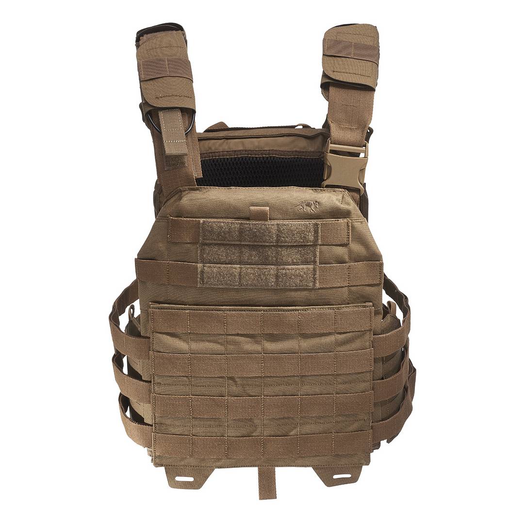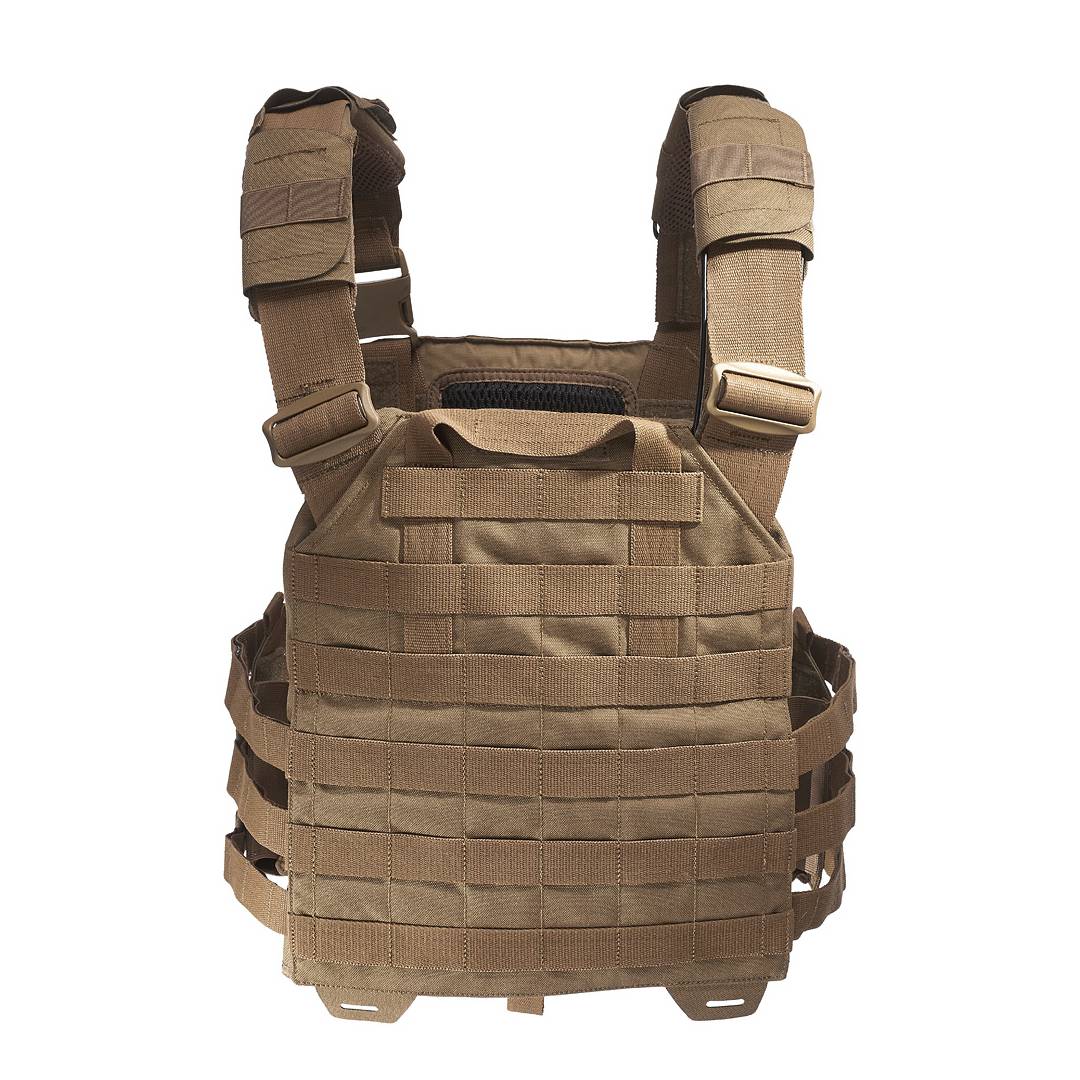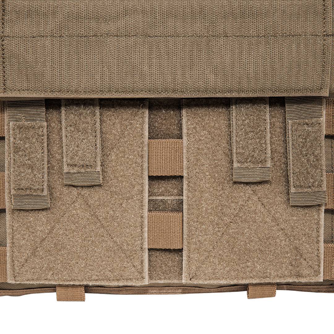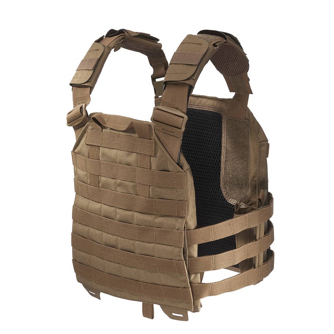 Lightweight plate carriers with removable front panel in two different sizes. Size 1 corresponds with S/M and is suitable for SAPI plates (30 x 25 cm). Size 2 corresponds with L/XL and is suitable for SAPI plates from 30 x 25 cm to 34 x 33 cm. The plate carrier has a flexible drop system and is provided with an SR buckle for fast dressing; the buckle can be mounted on the right or the left.