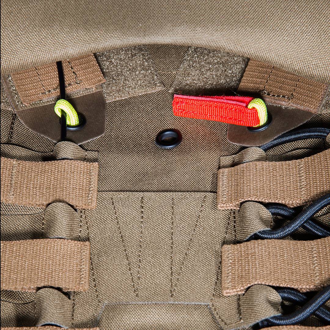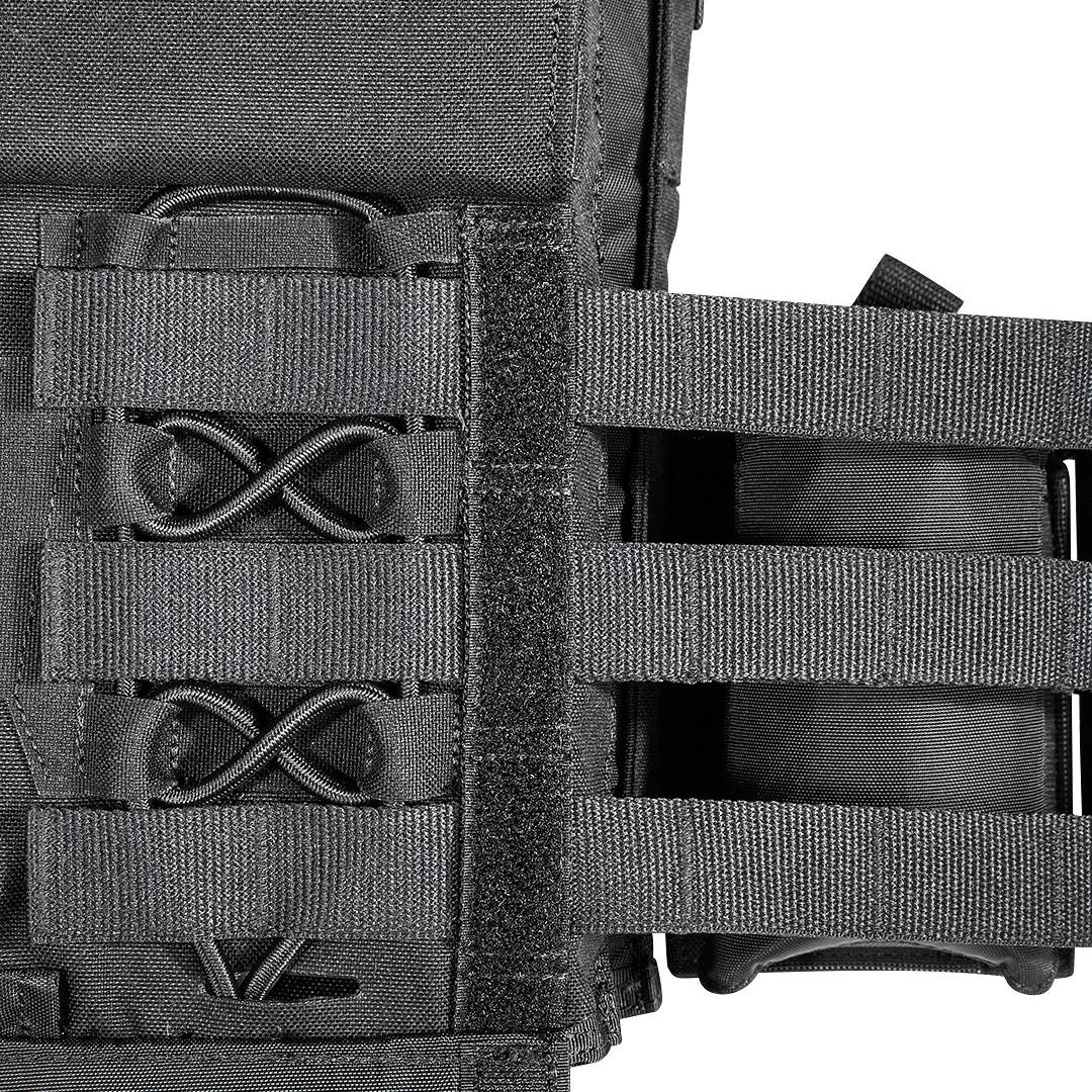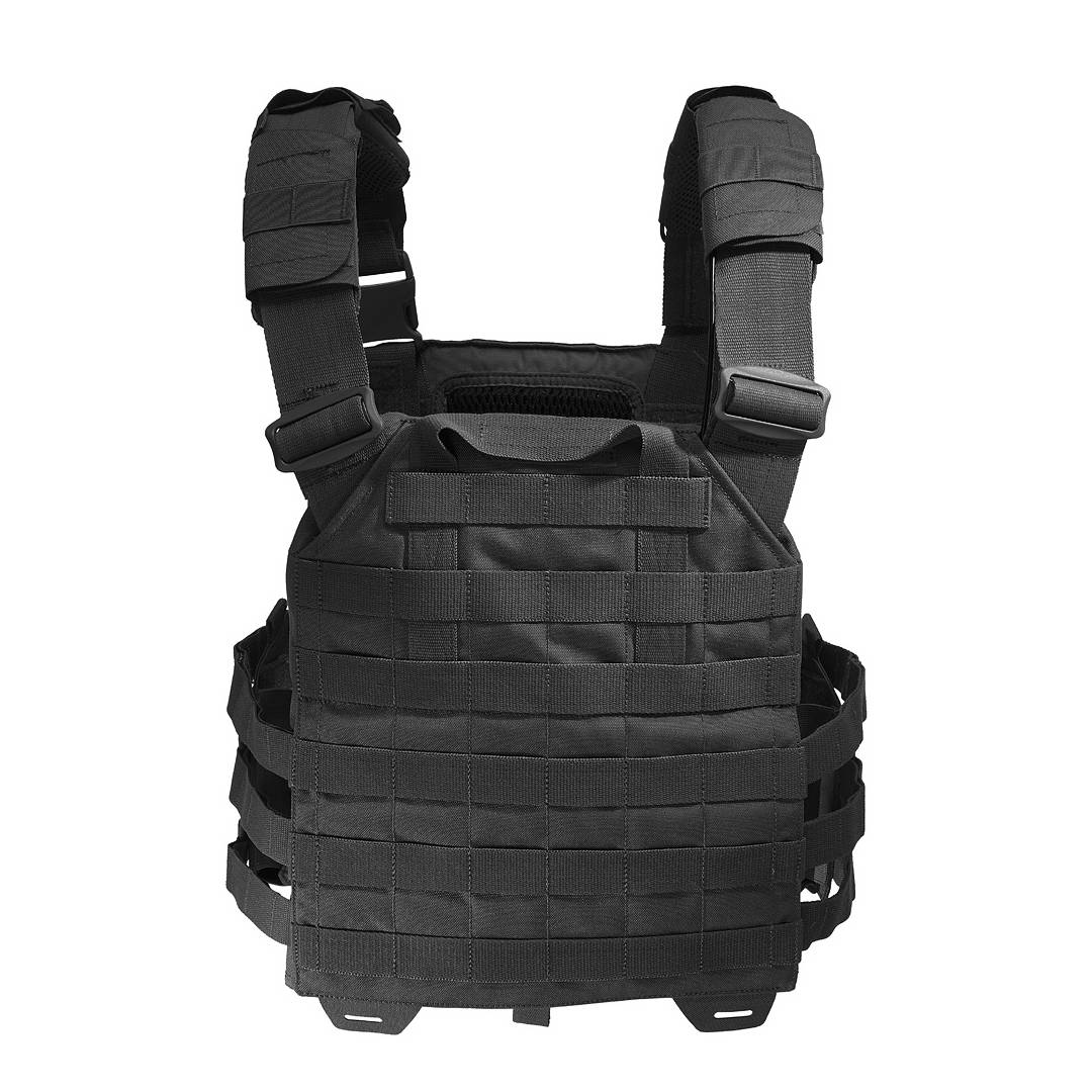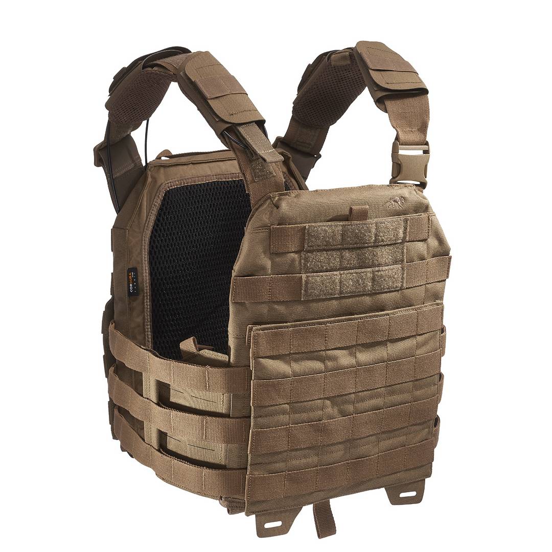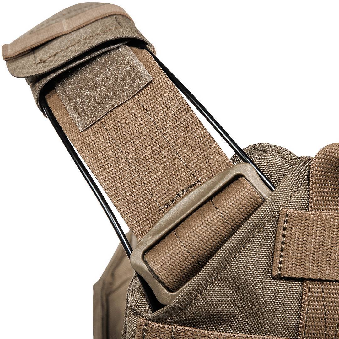 Lightweight plate carriers with removable front panel in two different sizes. Size 1 corresponds with S/M and is suitable for SAPI plates (30 x 25 cm). Size 2 corresponds with L/XL and is suitable for SAPI plates from 30 x 25 cm to 34 x 33 cm. The plate carrier has a flexible drop system and is provided with an SR buckle for fast dressing; the buckle can be mounted on the right or the left.